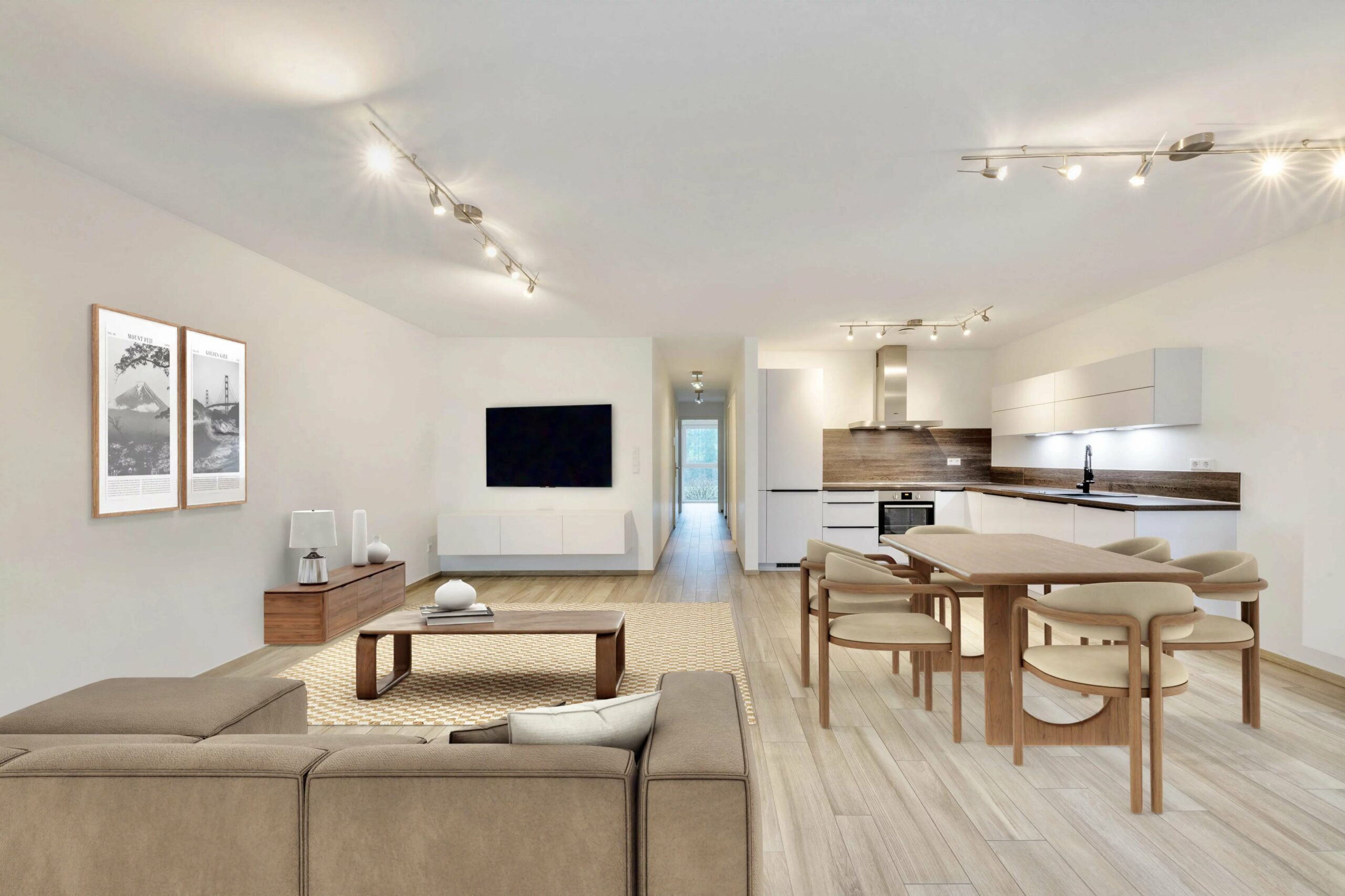 – Un salon / salle à manger avec cuisine ouverte de 38,34 m²