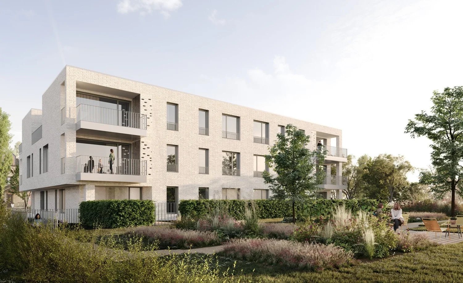 Un jardin collectif avec potager, barbecue et coins détente, idéal pour profiter de moments conviviaux en famille ou entre voisins vient compléter l’ensemble du projet.
