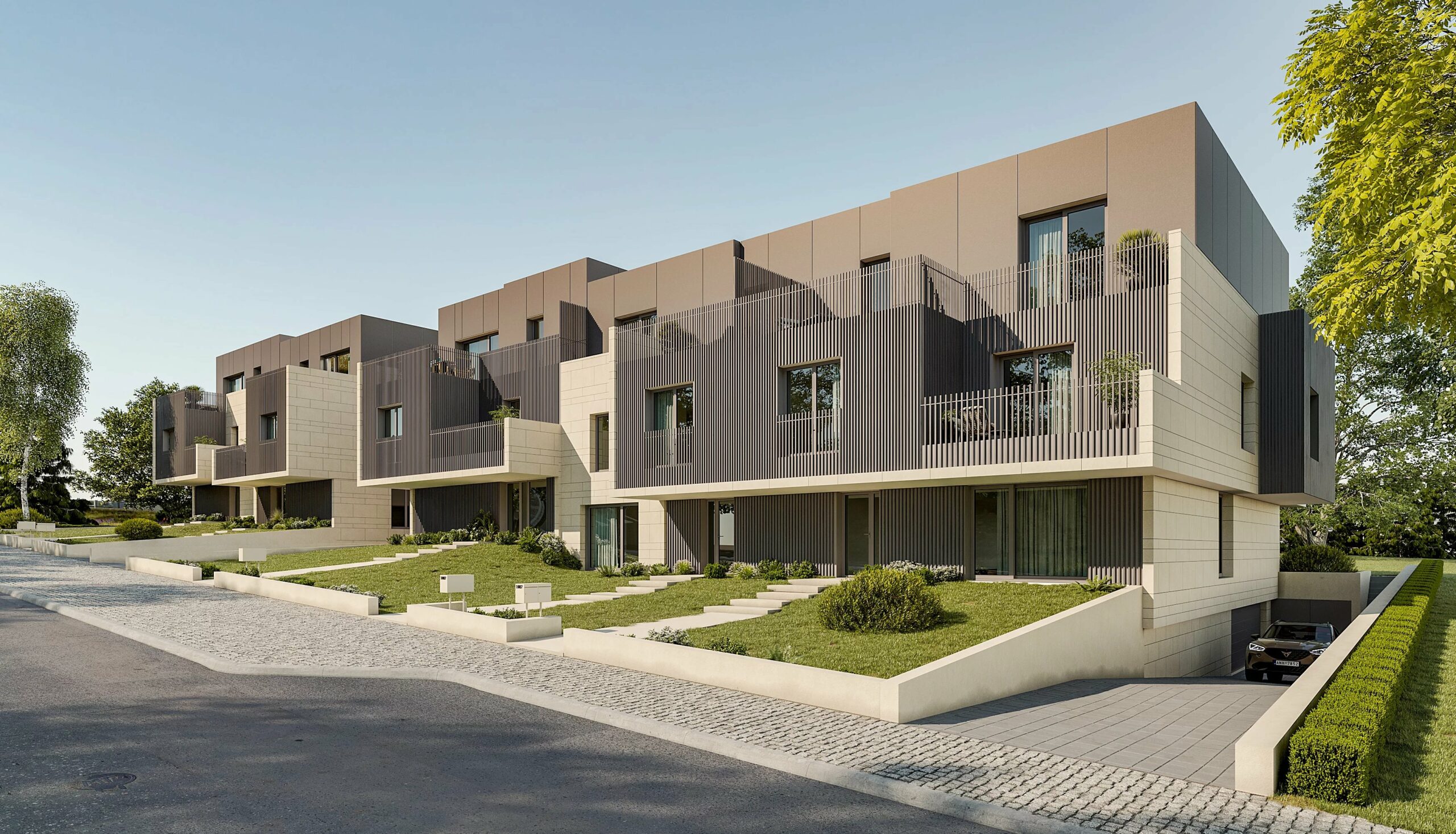 Les maisons, au style contemporain, accueillent chacune 2 appartements en duplex sur deux niveaux, desservis par un ascenseur à accès privatif.