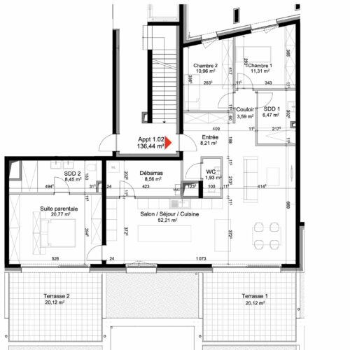 | Appartement | 2 | 101.49 | 0 | 885 843 € |