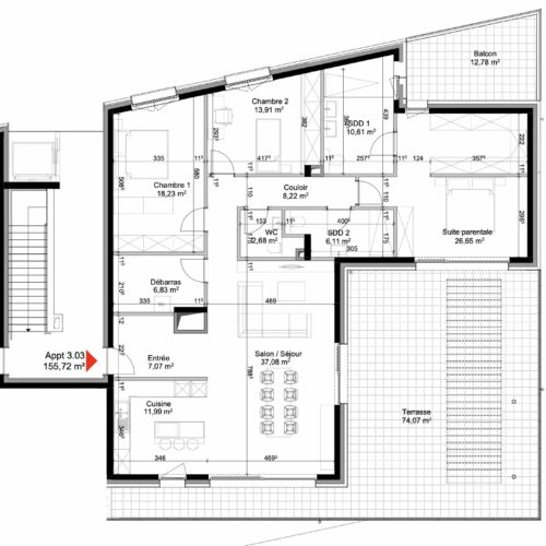| Appartement | 3 | 155 | 0 | 1 617 713 € |